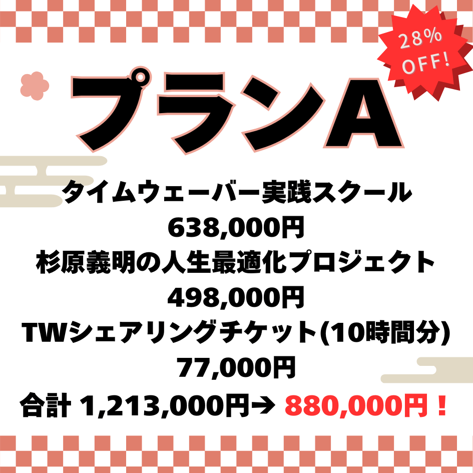 注意)プランAの福袋には、タイムウェーバーのスクール&シェアリング権利が含まれています。